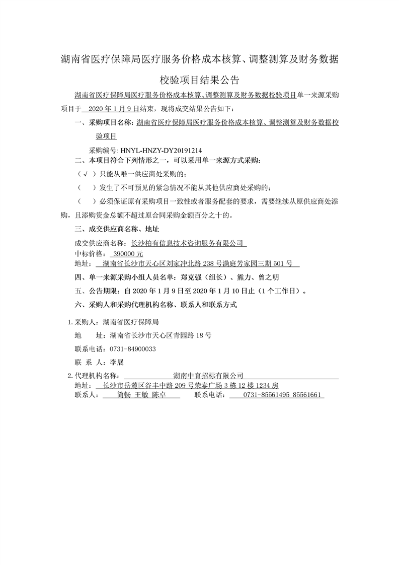 湖南省医疗保障局医疗服务价格成本核算、调整测算及财务数据校验项目结果公告